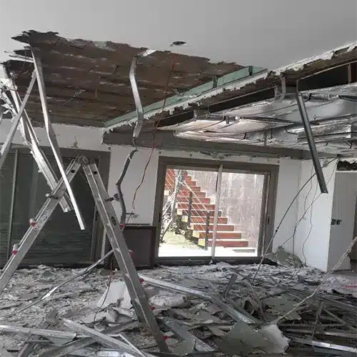 نزيل التالف من الطبقات السابقة، ونعيد صب أو تغطية الأسقف بأنظمة مقاومة للرطوبة والتشققات، وفق معايير التنفيذ الهندسي
